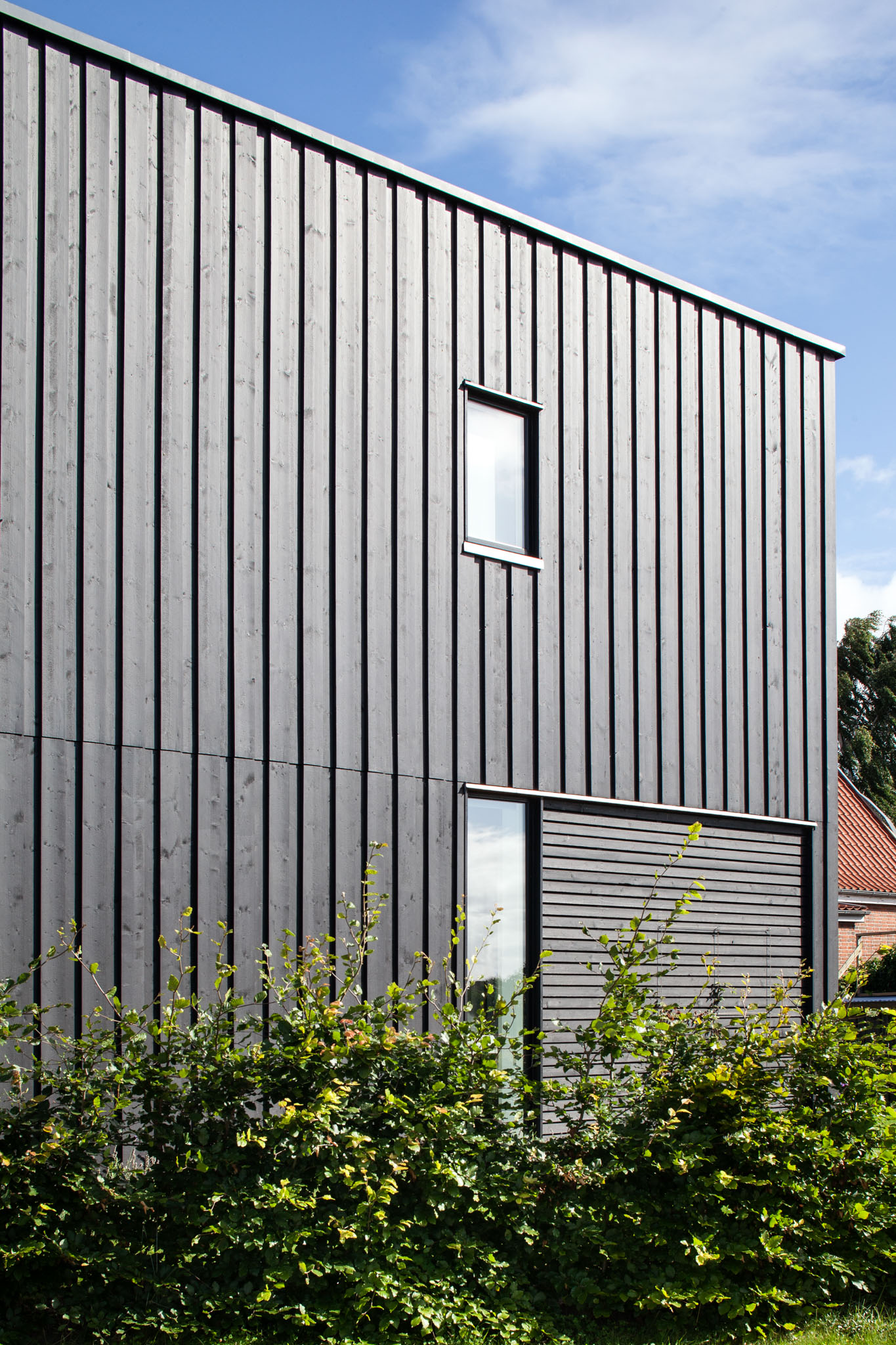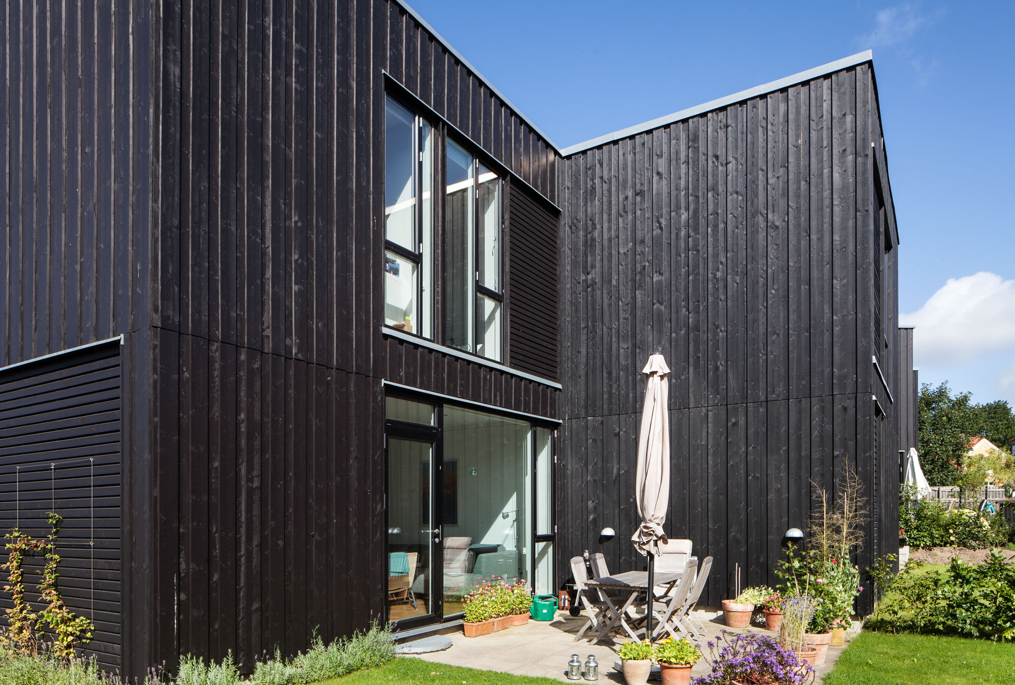 Dobbelthusene er alle opført i to etager med fladt tag. Facaderne er træbeklædte og sortmalede, de brydes kun af store vinduespartier, hvilket skaber en sammenhæng i materialer og udtryk. Boligerne er opført med små variation efter købers ønske, de fleste boliger er med altan, nogle har carport, skure og alternative indgangssituationer.