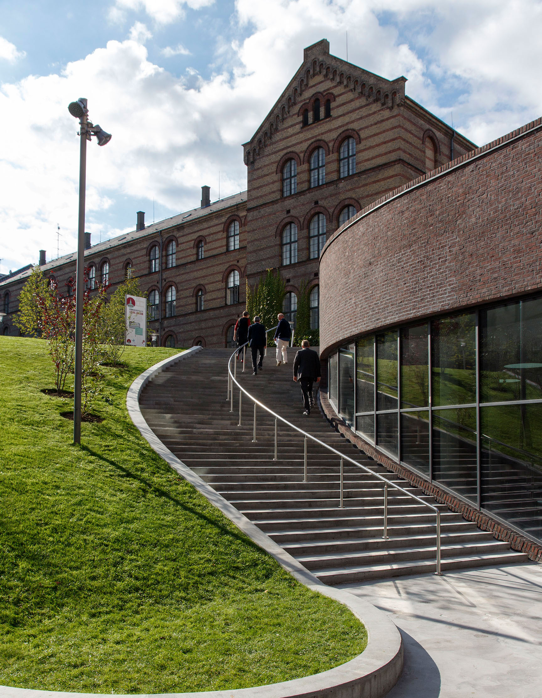Vi har formgivet en bygning til helheden, der i ornamenteret murværk, skifertag og detaljering refererer til Hansens Kommunehospital, men samtidig står som en bygning i vores tid. Som eksempel er det oprindelige hospitals vandrette røde, murforbander parafraseret til lodrette stregkoder og bygningsvolumenets dynamisk tilskårne tagform både nedskalerer bygningskroppen og integrerer 250 m2 solpaneler på den sydvendte tagflade.